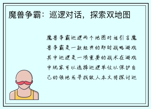 1. 魔兽世界怀旧服战士的智力堆叠意义 战士是魔兽世界中最具有攻击性和生存能力的职业之一,而在怀旧服版本中,战士的智力堆叠成为了一种备受关注的玩法。智力堆叠可以提高战士的法术伤害和法术命中率,增加其在团队战斗中的作用。以下将从多个方面对魔兽世界怀旧服战士如何堆智力进行详细阐述。凯发k8旗舰厅a...