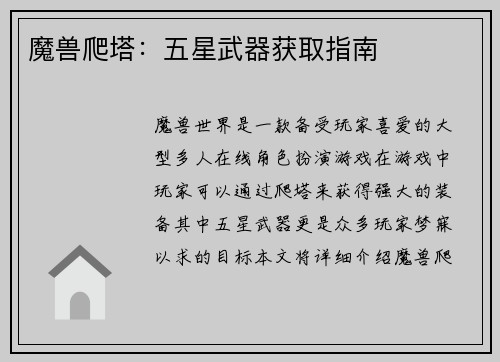 魔兽世界坚韧的勇士如何获得武器装备 魔兽世界是一款备受欢迎的多人在线角色扮演游戏,玩家在游戏中扮演着各种职业的角色,与其他玩家一起探索世界、完成任务、战斗怪物。在游戏中,获得强大的武器装备是每位勇士追求的目标。本文将介绍魔兽世界中坚韧的勇士如何获得武器装备。 1. 完成任务获得武器装备 在魔兽世界中,玩家可以通过完成各种任务来获得武器装备。这些任务可以是主线任务、支线任务或者日常任务。完成任务后,...